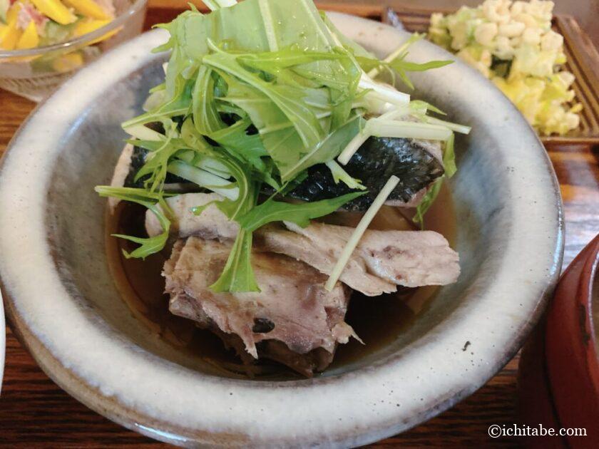 お次は大根です。こちらもえぐみは全く気になりません。鰤とは対照的にしっかりとしゅんでいて、生姜風味が強めです。 んー!この大根はいくらでも食べれるぐらい美味しい…♪ 彩りある水菜も口直し的な役割があって味わいにバリエーションを出してますね。